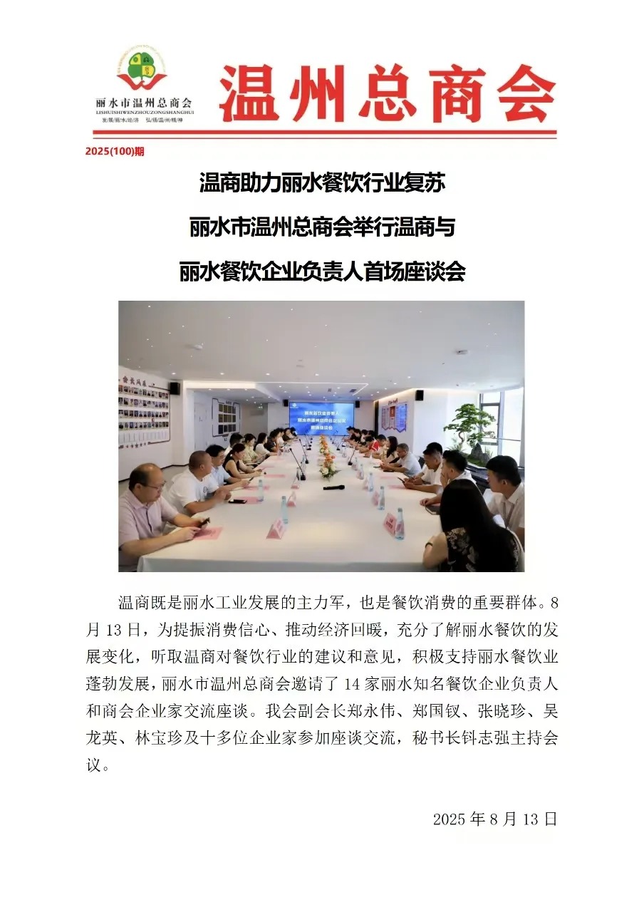 温商助力丽水餐饮行业复苏——丽水市温州总商会举行温商与丽水餐饮企业负责人首场座谈会