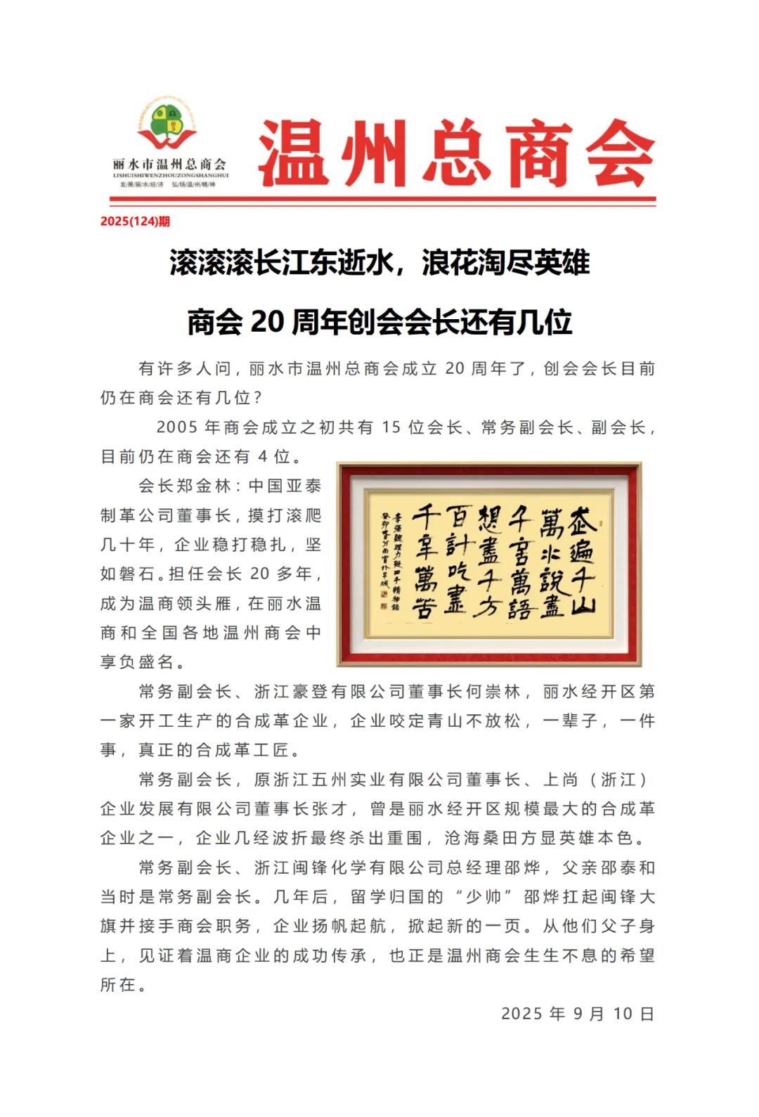 有许多人问,丽水市温州总商会成立20周年了,创会会长目前仍在商会还有几位?