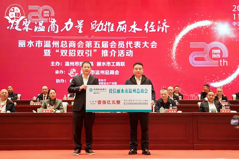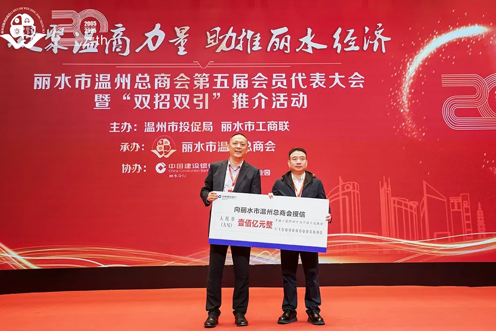 中国建设银行丽水分行、中国农业银行丽水分行分别向丽水市温州总商会授信100亿元