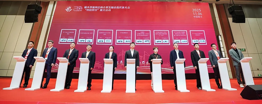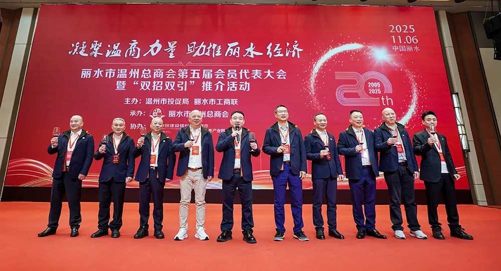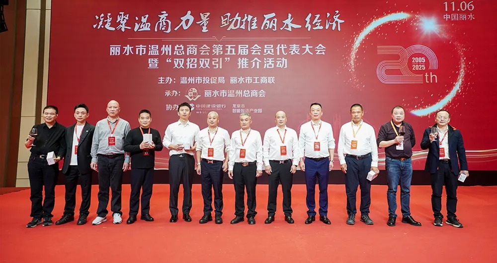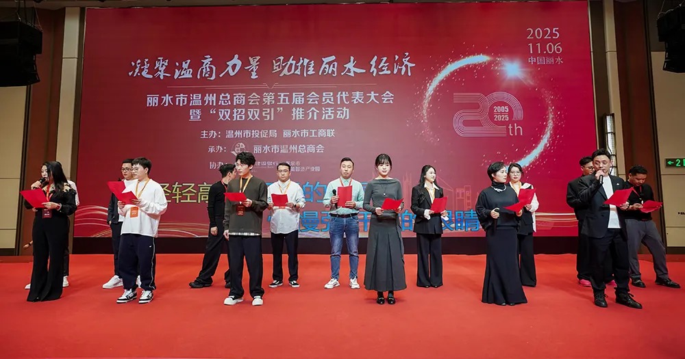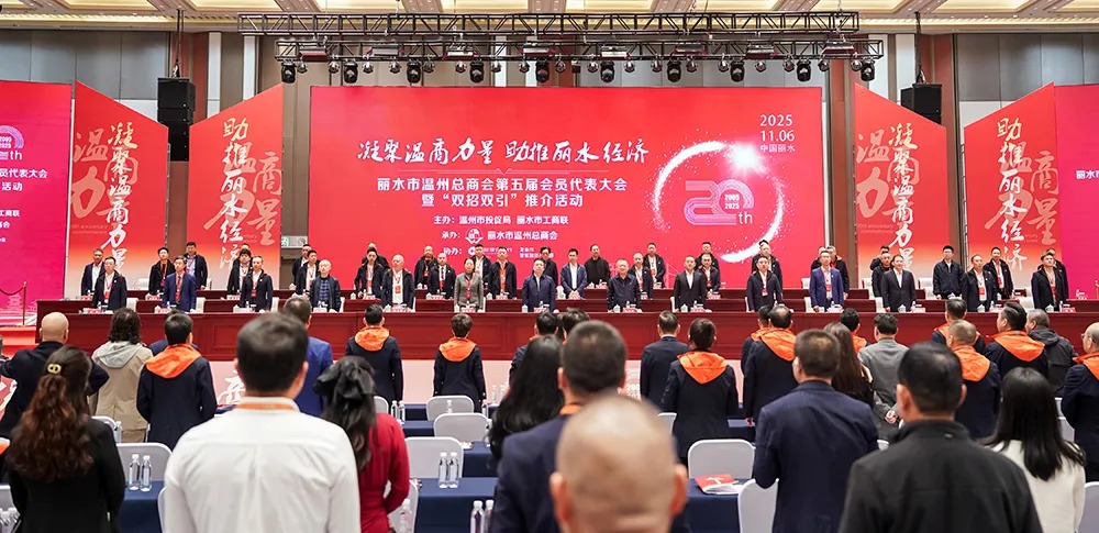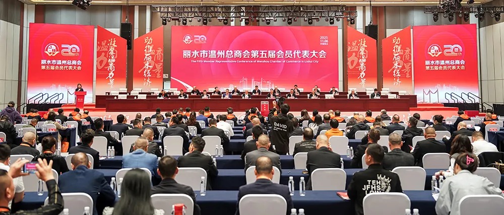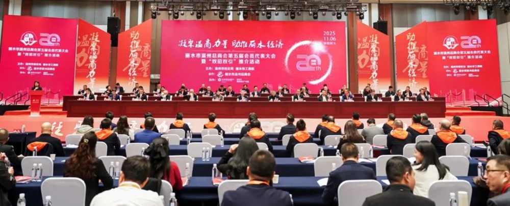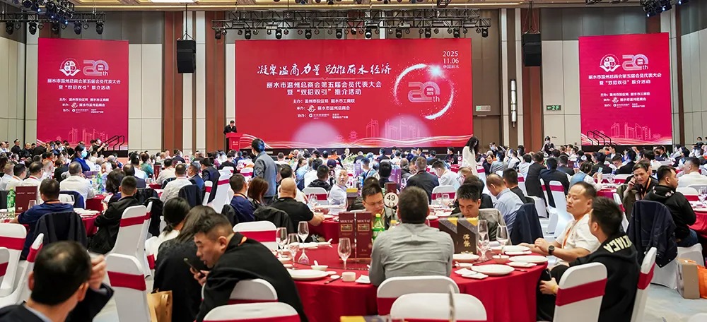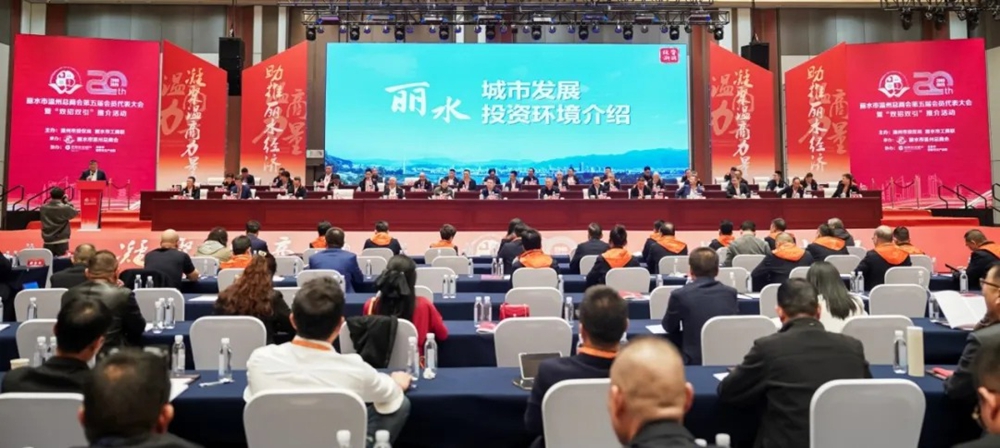 11月6日,丽水市温州总商会第五届会员代表大会暨“双招双引”推介活动在丽水国际会展中心隆重举行。丽水市委副书记、市长朱林森出席并讲话。温州市人大常委会副主任周一富,丽水市人民政府副市长周和平,丽水学院原党委书记廖思红,丽水市委社会工作部常务副部长徐丽勇,温州市投促局局长徐海严,温州市商务局局长虞立清,温州投资促进局党组成员、副局长项欣华,丽水市民政局局长廖旭青,丽水市委统战部副部长、市工商联党组书记罗叶中,松阳县人民政府县长李宣,丽水市促进中心(市双招双引中心)首席推荐官陈磊,市工商联党组成员、副主席张奇,松阳县委常委、统战部长杨健勇,温州湾新区管委会副主任赵豪,莲都区人民政府党组成员、副区长季泉泉,纳爱斯集团董事长兼总裁何丽明等参加会议。丽水市委常委、统战部部长楼琅坚主持会议。浙江云中马股份有限公司董事长叶福忠当选新一届丽水市温州总商会会长。由温商投资的龙泉、青田、松阳等地8个共47亿元项目在大会上集中签约。温州市相关部门和丽水市有关部门和县(市、区)领导、金融单位负责人,省域温州商会、丽水兄弟商协会代表,知名温商及丽水市温州总商会会员代表共近600人参加大会。
