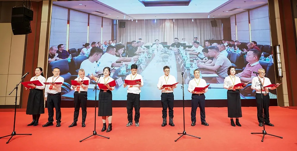 丽水市温州总商会党支部书记林松顺、执行会长邵烨为温商新生代常务副会长郑国钗、林康乐、陈佰通、张彬博、李峰、曹海宙授牌。