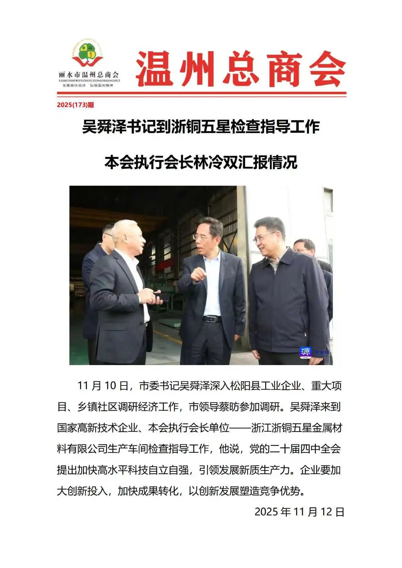 吴舜泽书记到浙铜五星检查指导工作